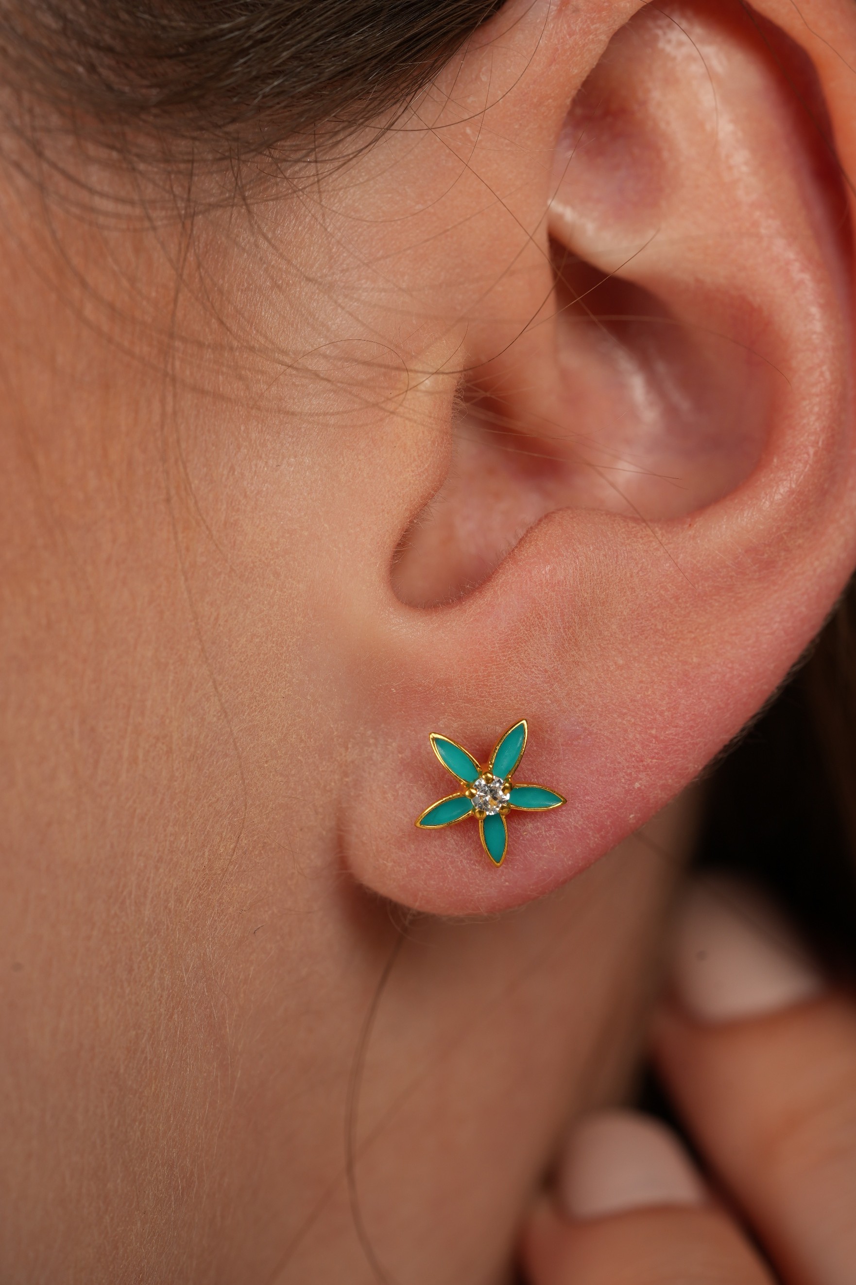 Earrings Jasmine from Sallys dot S 18K Gold Turquoise Color Model 303